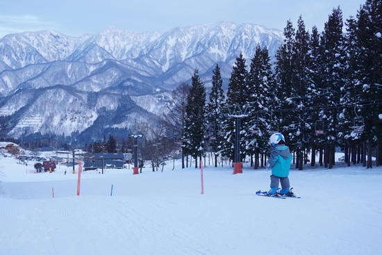 斜度変化が少ない幅広バーン、さらに風が強くても安心の林間コースに加えて4歳から入校できるスキースクールのおかげで息子も楽しくスキーデビューができました!