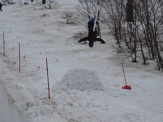 朝から疲れ知らずにこぶに挑んでいました麓まで滑って行けなくなりそうですが、上部はまだまだこれからです。