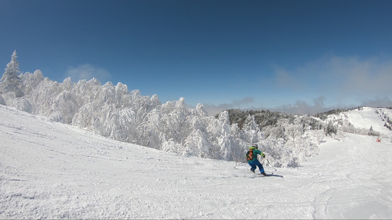 志賀高原リゾート中央エリアの中でも雪質の良い寺子屋。 この日も朝まで新雪~曇り~お昼から晴れで絶好のスキー日和となりました。
