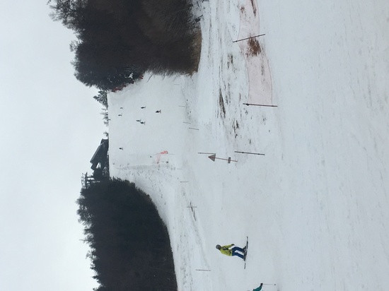 12/22は暖かく春のような雪で五の原コースは2セットゲートを張っていますが、かなり荒れてしまいます。しかし土が出ることなく滑ることができています。