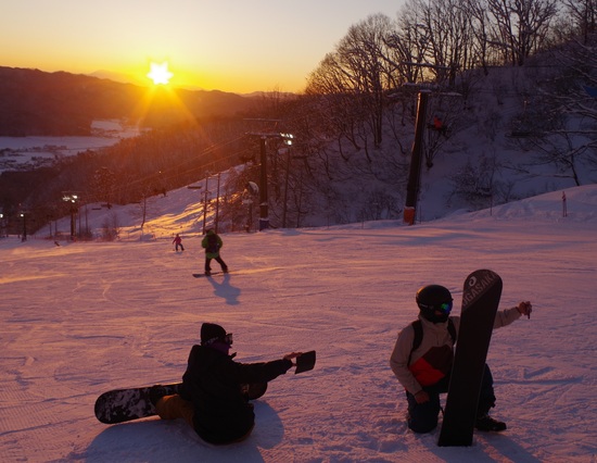 五竜のサンライズは、6時半からです。この日は朝、マイナス13度でしたがちゃんとゲレンデメンテをしてくださり、最高のサンライズ滑走を楽しめました。