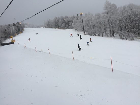 朝から雪で少し前も見えずらいくらいでしたが連休始めにしては、いつもよりリフトも空いている感じでした。