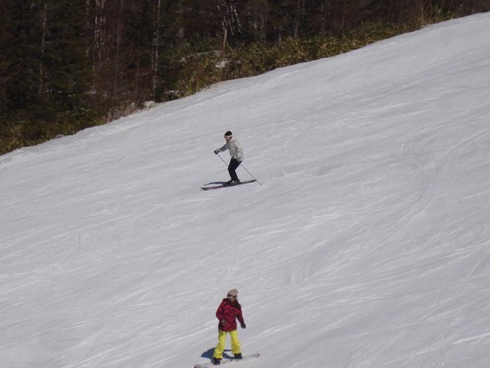 今日はむっちゃいい天気でした。でも雪煙が上がる軽い雪でした。