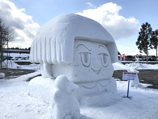 牧歌の里で昨日より開催の雪まつりに行ってきましたよ 話題の雪像がいっぱい~ チコちゃんは想像もしていなかった~(#^^#)