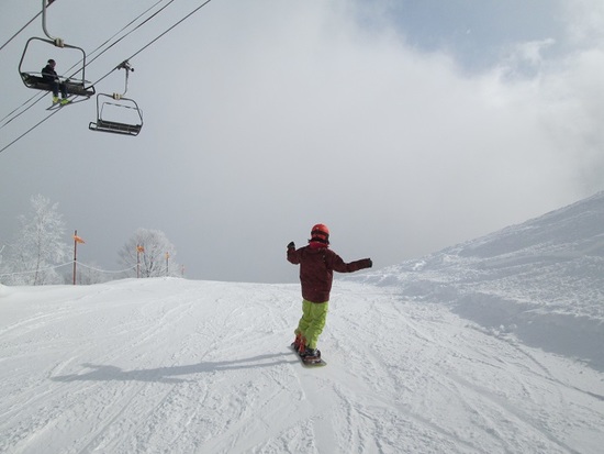 白馬あるある、上部、下部は快晴、中部は雲海。神秘的滑走楽しめました