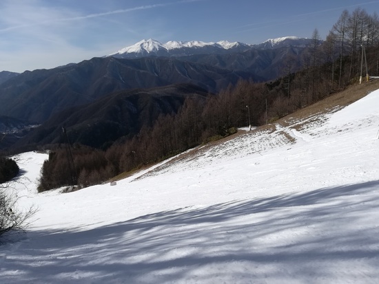 元々厚くもなかった積雪ですが、ここ最近の陽気で下半分エリアは草が目立ち始めました。