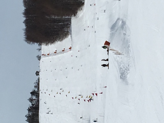 平日の降雪と毎日の冷え込みでバーンは硬くgood!積雪は薄いですが3/31の最終営業日までは充分もつでしょう。