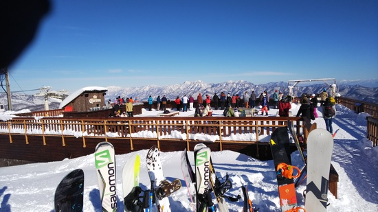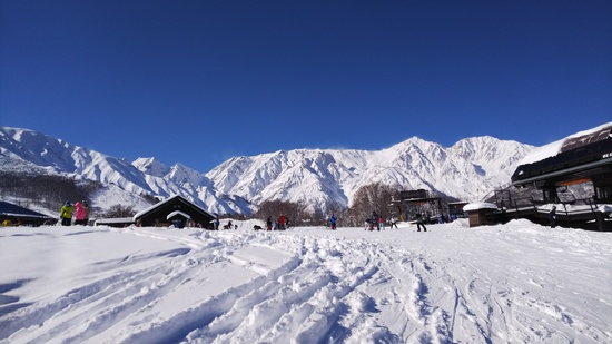 雲ひとつない最高のコンディション。パウダー、コブ、温泉、八方最高です。