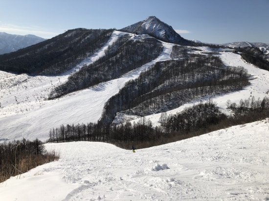 朝〜11:00位までは、人も少なくコンディションも良かったのですが、12:00前位からどんどん人が増えてリフトは長者の列、狭い所は渋滞、レストランも溢れかえり、そして快晴で気温が上がり、滑走者も多い為、雪が溶けて掘られて、ブッシュはもちろん、土が出てコースによっては茶色がかった箇所も有ります。