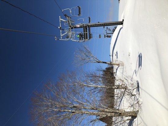 朝イチは雪でしたが、段々と晴れてきて、昼過ぎには快晴に。景色を楽しみながらダラダラ滑って終了。