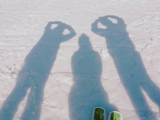 朝一はゲレンデコンディションがよく、ピステ跡がよい感じ。コースは飽きないようにウェーブなどかあり、子供たちはよろこんで突っ込んでました。2枚目の写真は子供と一緒に影絵遊び。
