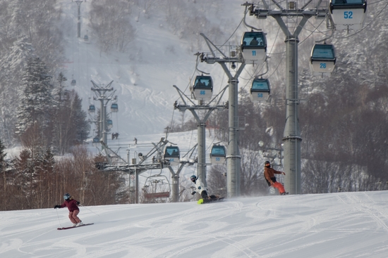 朝一番のピステンをカタカタ削っていく至福のひととき。コース幅もあり、リフトの足置きもあるから何度も回したくなるコース