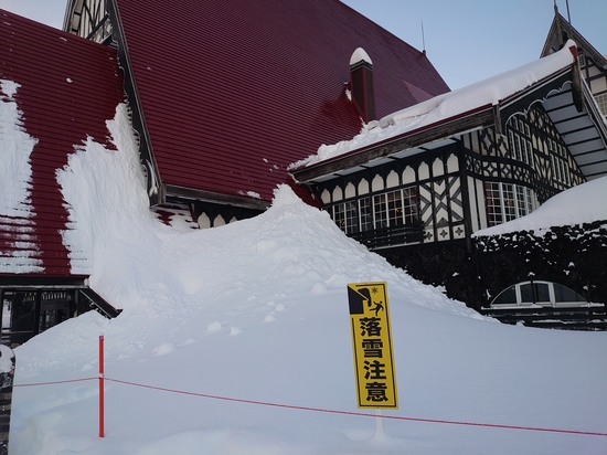 屋根が大きいホテルですから、雪が滑り落ちて来ていて、3階位まで埋まっているとこもありました。