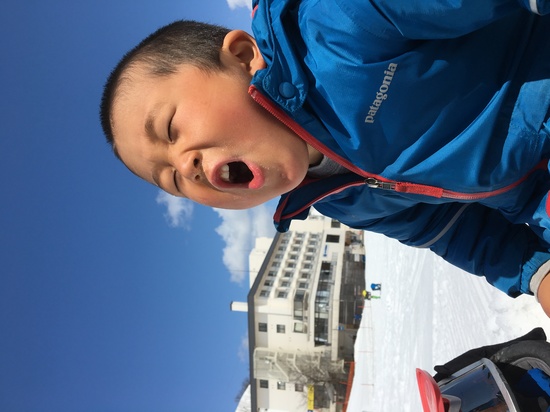 シーズン終了間際 春らしいザクザク雪でしたが どんな状況でも楽しんじゃうのが子供 ポカポカお外でお弁当はさいこうでした。