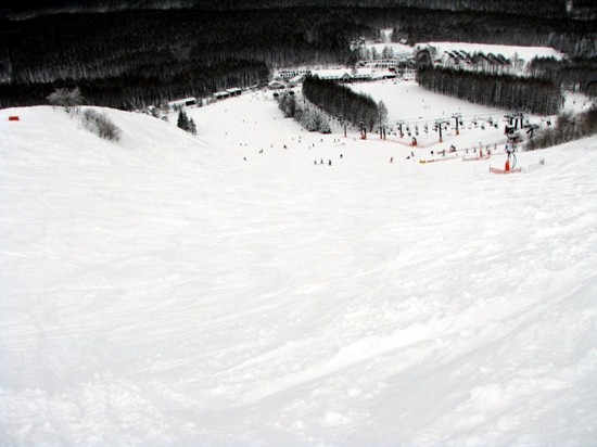 だから人工降雪機の雪なので午後からはベースの固めたアイスバーンが急斜面では見え始める