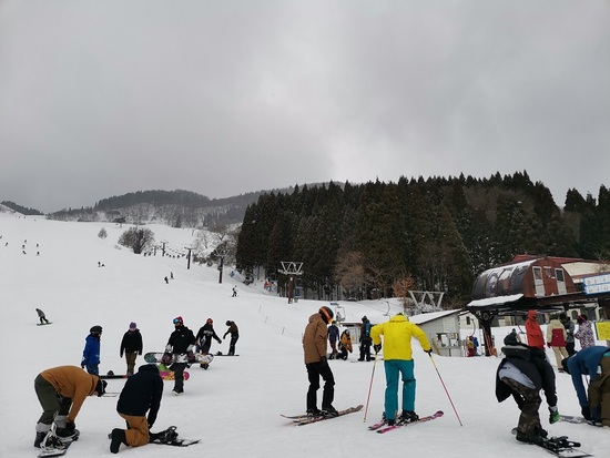 タイトルはあくまで個人的感想です。ゲレンデはかぐらのようにゴンドラでベースまで上って、そこから各リフトに乗るタイプ。こじんまりと謳ってますが規模は小~中の微妙な境目と言ったところでしょうか。関東の人に分かるように表現すると八千穂、アサマより確実に広く尾瀬戸倉といい勝負と言ったところでしょうか。横幅がそこそこあるので開放感を感じます。1月の金曜日はリフト券¥1,000で麓の日帰り温泉おじろんも¥400で入浴できたのでコスパはかなりいいですね。昼前にはゲレンデ全体がガタガタに耕されたのでさっさと上がりました。