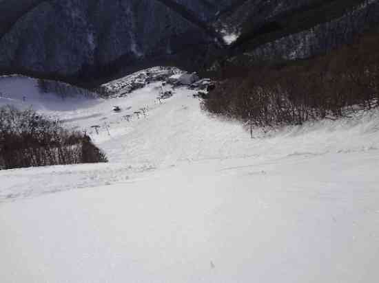 ゲレンデはガラガラで、リフト待ちは全くなし。高速リフト2本を中心に利用すれば、中、上級コースをたっぷり滑れます。