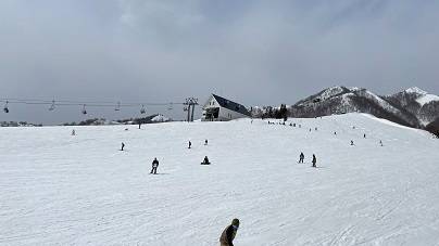 大きなスキー場でも狭いコースが多い中、岩原スキー場は幅が広く開放感がたっぷりでした。