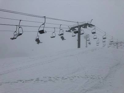 雪も水っぽくてウェアもビチョビチョ、ゴーグルも水滴で見えず、、、。