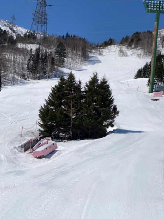 この時期の苗場にしては雪が豊富で黄砂も少なく滑りやすかったです。稼働リフトはクワッド・ペア・ゴンドラそれぞれ一本ずつでした。