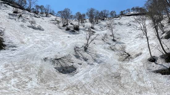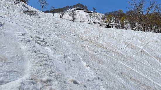 熊が出没してゲレンデを走っているとのことで山頂の膳棚リフトが一時停止。