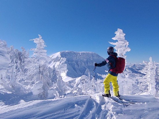 神楽峰までハイクしdropイン!気持ちよく滑れて最高なかぐらBCでした。