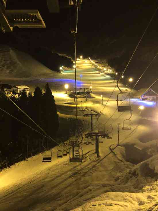 気温も高く風もないので久しぶりにナイター滑ってみました。ライトアップされた雰囲気が良かったです。