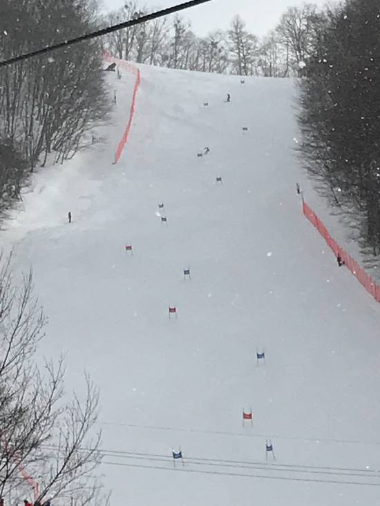 前夜の降雪のため滑りづらい雪となりましたが、大会エリア以外では家族連れがいっぱい滑りに来ていました