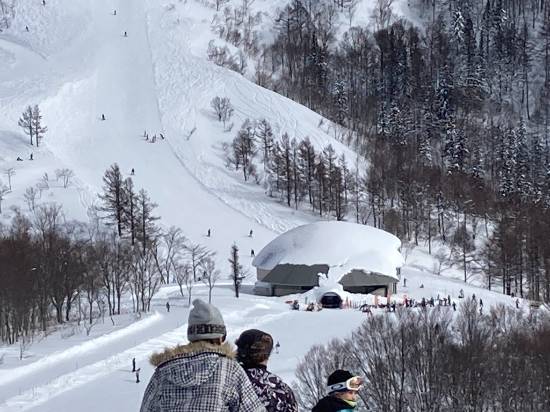 全体的に見れば初心者ボーダーが多め。他の人も指摘していますが、コースの座り込みも目立ちますのでご注意を。体感のスノボ率は8~9割とかなりスノボ多めです。