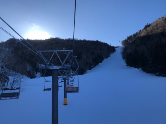 気温の上昇で溶けた雪が、夜に冷えて凍った上に人工降雪機の雪が乗り、明け方に綺麗にグルーミングされたゲレンデは大変滑りやすかったです。
