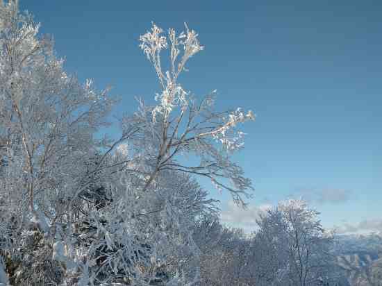 午前中は快晴で、山並みに向かって滑り降りるシチュエーションが最高でした。多少アイスバーンもご愛嬌。満足の1日です。