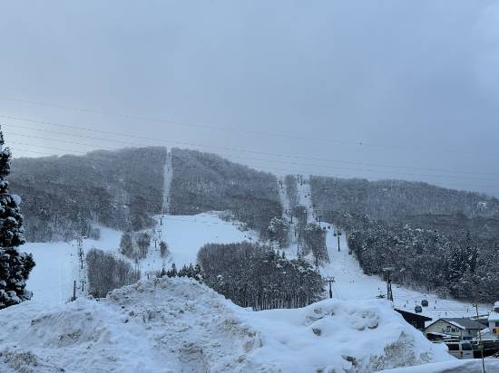 全国学生岩岳スキー大会が行われており、学生スキーの聖地といわれている割にはスノボ率が7割ほど。スノボの割合が高いです。