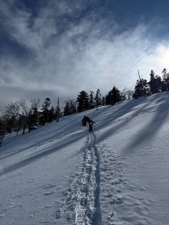 肝心のコンディションは降雪から2日経っているのにノートラックもチラホラ、雪質も南斜面は少しパックされているところもありましたがまずまず!北斜面は軽いドライパウダー、ノートラックは最高でした!ほんとによい経験が出来ました!