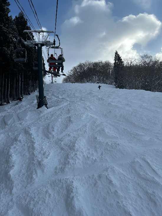 ココのスキー場はプレミアムパウダーデーとかいってかなりの降雪が期待出来る時に告知してゲレンデの90%を非圧雪にする日があるのですが今日は流石に祝日なので上級コースは完全非圧雪なプレミアムなパウダーデーでしたね(笑)