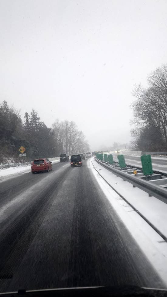 タイヤ規制のタイヤチェックを受け、暴風雪に見舞われ疲れたよ・・・