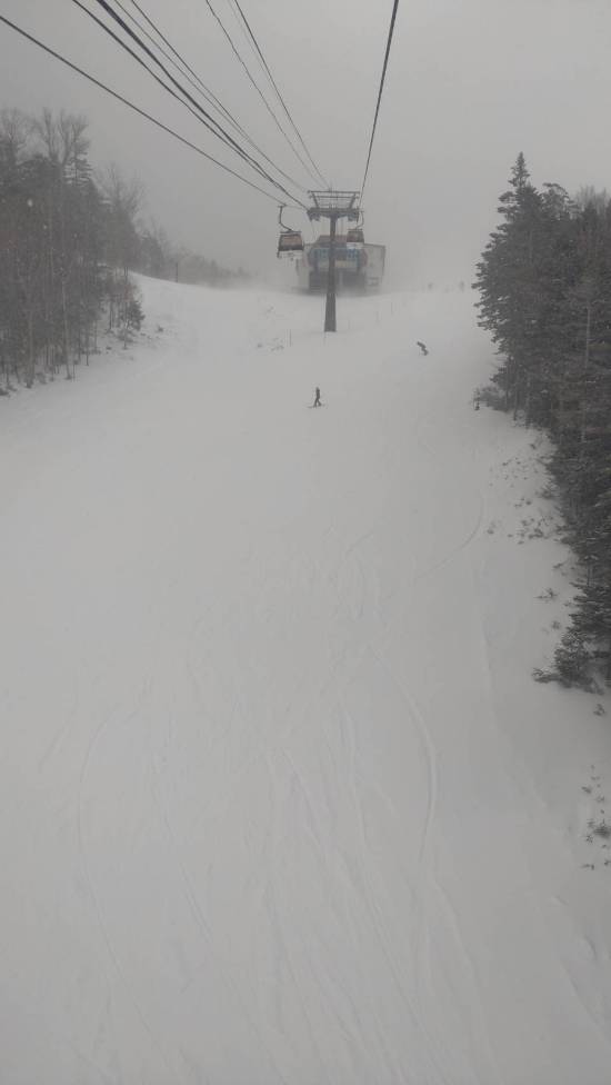 湿った雪は重かったけど、深夜から降り続く新雪は常にゲレンデをいい状態に保ってくれ、平日とは言えガラガラなゲレンデで1日中快適に滑れました。