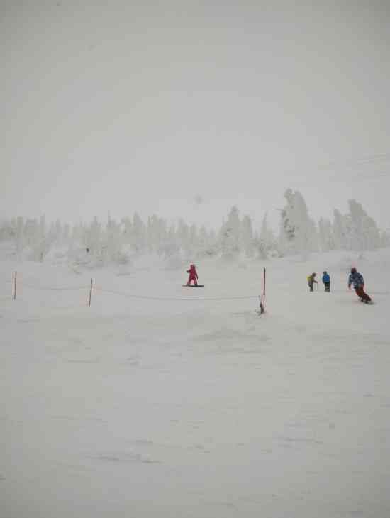 蔵王温泉スキー場の蔵王ロープウェイ地蔵山頂駅からの写真です。樹氷を求めて多くの観光客、特に外国人の観光客が多かったです。この山頂から一気に樹氷原コースを滑り降りるのがサイコーです!