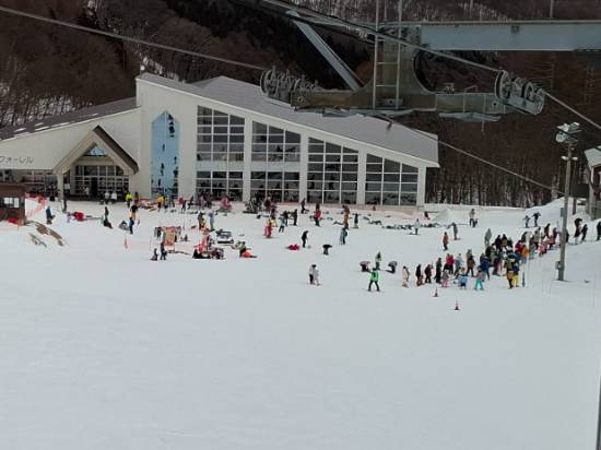 休日のため混んではいましたが、ゲレンデは良好で、16時の最終まで楽しく滑れました。