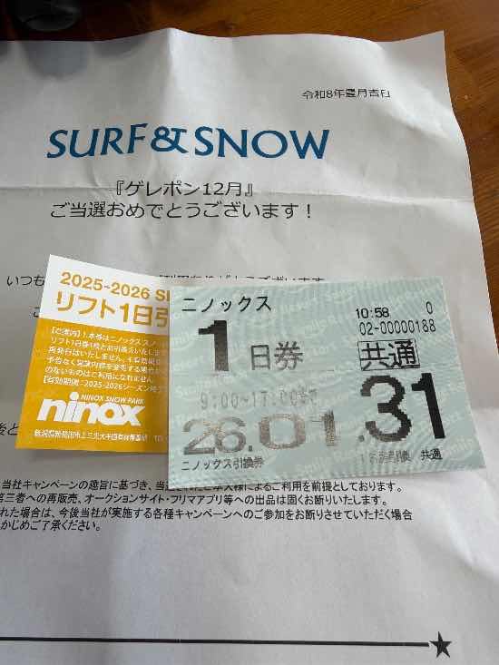 緩斜面が多く、初心者、子どもにはピッタリのスキー場だと思いました。SURF&SNOWさんのゲレポンでいただいたリフト券、有効活用させていただきました。ありがとうございました。