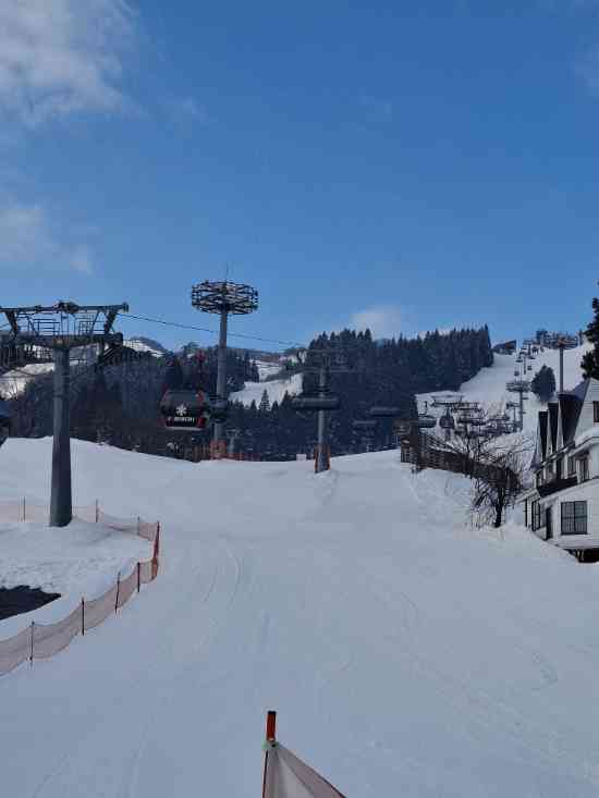 ゲレンデは暖かく、雪質も春スキー間近な感じでしたが、楽しく滑れました。
