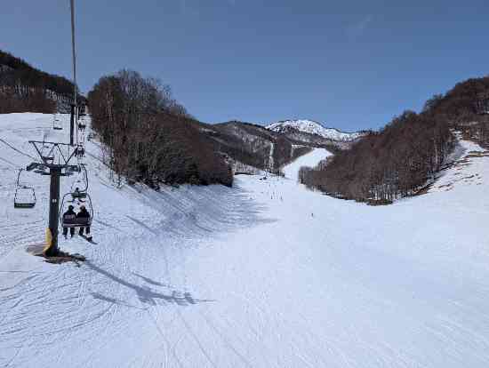 コースは多彩で面白く、標高が高いので山頂の雪質は良く、山麓も積雪量は問題なかった