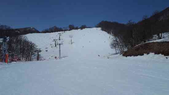 ゲレンデはワイドで、いいコンディションを維持。ハンの木コースので、下からザクザク気味ですが、ぬかるむ感じじゃないから快適に滑れますよ。中間駅までまだしっかり繋がっているからまだまだ雪はある方。今月中まではいいかも。バーガーキングがあるのも栂池に行く目的になってますね。