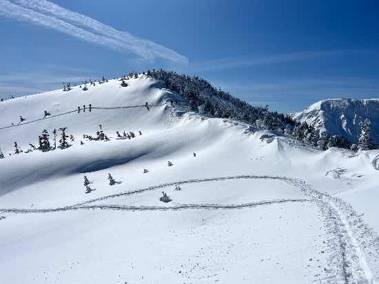 2月の平日ど真ん中であったが、やはり人は多くパウダーを求めて来る人ばかりであった。朝イチロープウェイで出遅れないよう頑張ったが、達人のような人達の無駄のない回し方には付いて行けず、5ロマが動くというのでBCエリアへ。神楽ケ峰を目指したのだが、気付いたらニセ神楽にいた。景色はとても良かった。中尾根の北斜面へ滑り込んでいったが、人生で初めてあんなにスプレーが上がった事はないってぐらい、バカでかいスプレーを上げることができ脳汁ヤバい。また行きたい。コースに復旧するまでに苦労するほど雪の量は多かった。