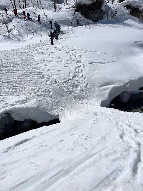 早割チケットが余っていたので、これは使わねばとBCの冒険に出かけることに。ゴンドラに乗ってロープウェイに乗って歩き出す。なのでゲレンデを一切滑ってないので様子は分かりません。すみません。金山沢を滑ったのですが、パウダーはありませんでした。途中のスノーブリッジもいつ落ちてもおかしくないような細さでした。帰りの林道で連れが川に転落しました。そんなBCでした。
