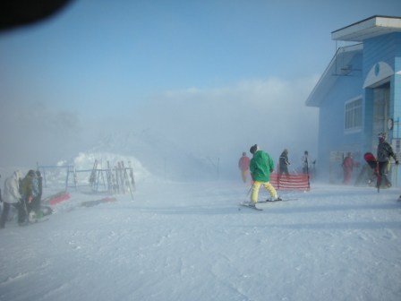 強風のなか、なんとか1日滑りきりました。