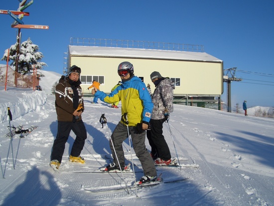 そして山頂へ向かうリフトに乗っていると、急激にガスが無くなって来て一気にピーカンになりました。