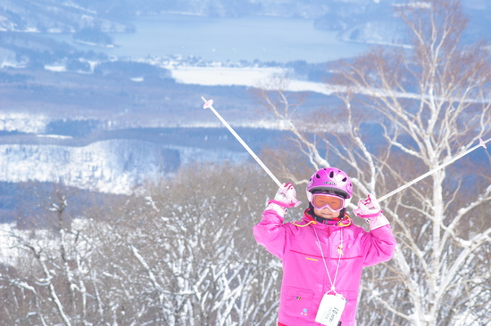 ゴンドラで一気に上り、一気に滑り降る爽快感は格別です。また、正面に見える斑尾山や野尻湖の景色も最高。