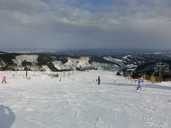 牛岳は4人乗りリフトを乗れば山頂まで上がれて、そこから一気に滑ることができる、シンプルなスキー場ですが、なぜか最後に急な斜面があります。