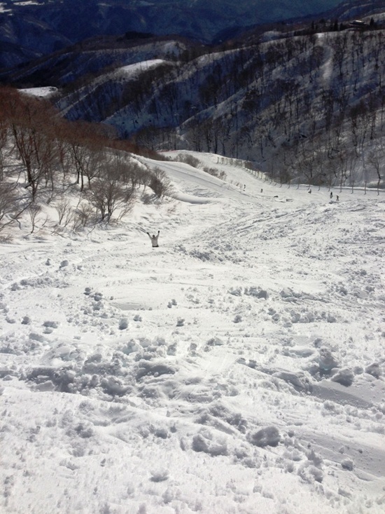 急斜面ばかり無理やり滑って遊んでいたら2時間で足がガクガクになり、年齢を感じました。