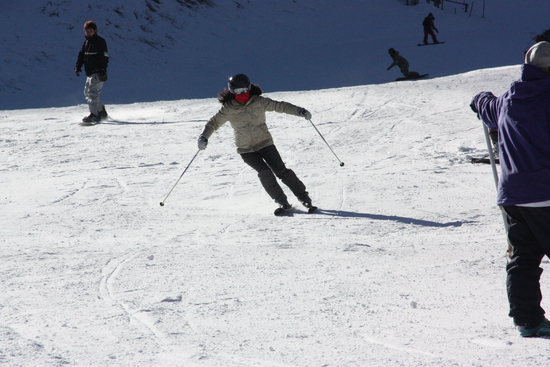 カリカリ、ガリガリ、ツルツルのイメージがあるカムイみさかですが、意外や意外、滑りやすい雪でした。